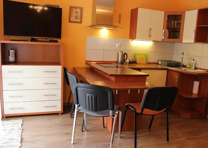 Naast koffie- en theevoorzieningen, zijn de zelfvoorzienende faciliteiten in de complete keuken onder andere een koelkast, een oven en keukengerei. Als u een vroege vlucht hebt vanaf Karpacz, ligt dit 2-badkamer appartement op 125 km van Wroclaw-Copernicus.